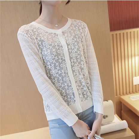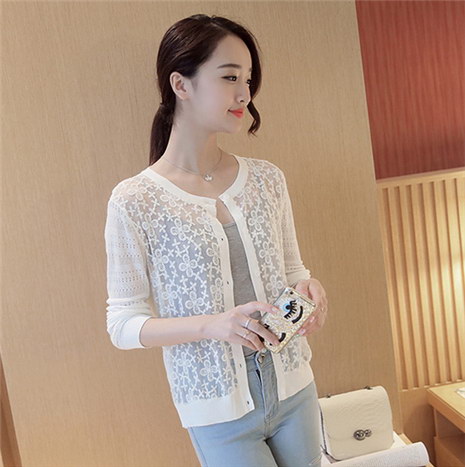 薄针织衫女开衫 短款外搭蕾丝镂空针织空调衫女防晒衫披肩女