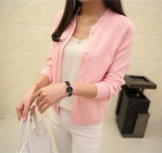 春季新款韩版口袋圆领直筒长袖棒球衫针织衫开衫外套女
